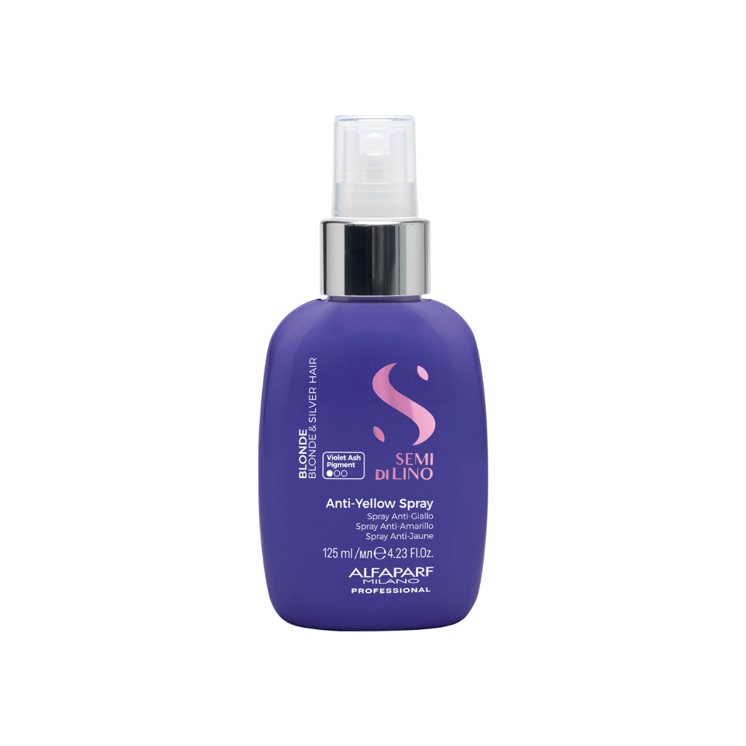 Semi di Lino Blonde Anti-Yellow Spray helps neutralise unwanted yellow tones while enhancing brightness and shine in blonde, lightened or grey hair. The lightweight leave-in formula supports detangling and manageability while maintaining a clean, cool-looking finish. Ideal for maintaining blonde services between washes, it leaves the hair feeling softer, smoother and more luminous.