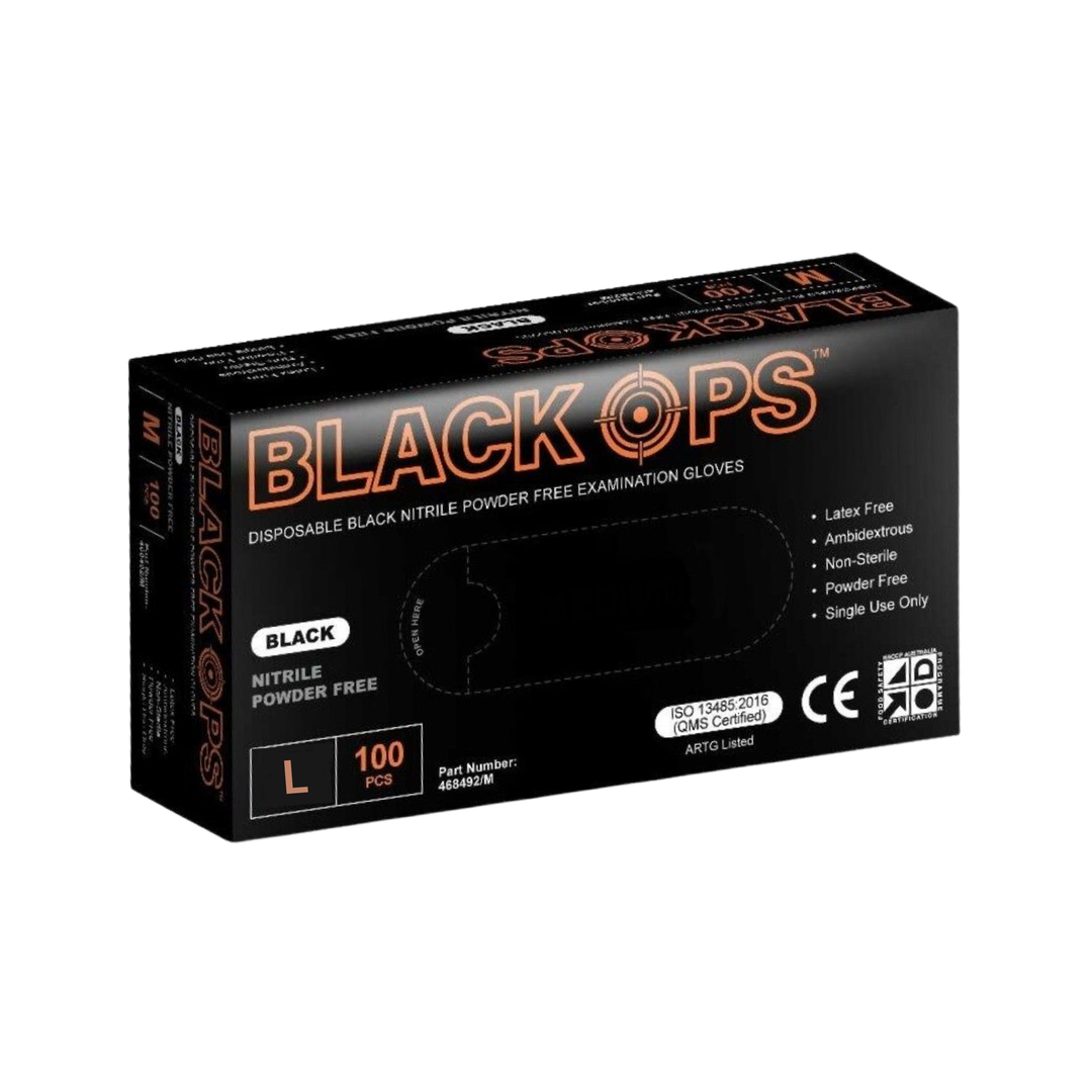 BLACK OPS DISPOSABLE BLACK NITRILE POWDER FREE GLOVES 100PCS - LARGE