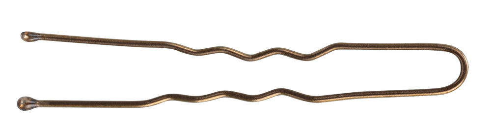 Directions: To apply, section out the fringe or detailing area you wish to secure and gently place it into position. Insert the pin flat against the scalp, ensuring the bronze finish blends naturally into the hair. Use multiple pins if needed to layer or reinforce the section. To remove, slide the pin out slowly in the direction it was inserted, taking care not to tug on finer strands.
