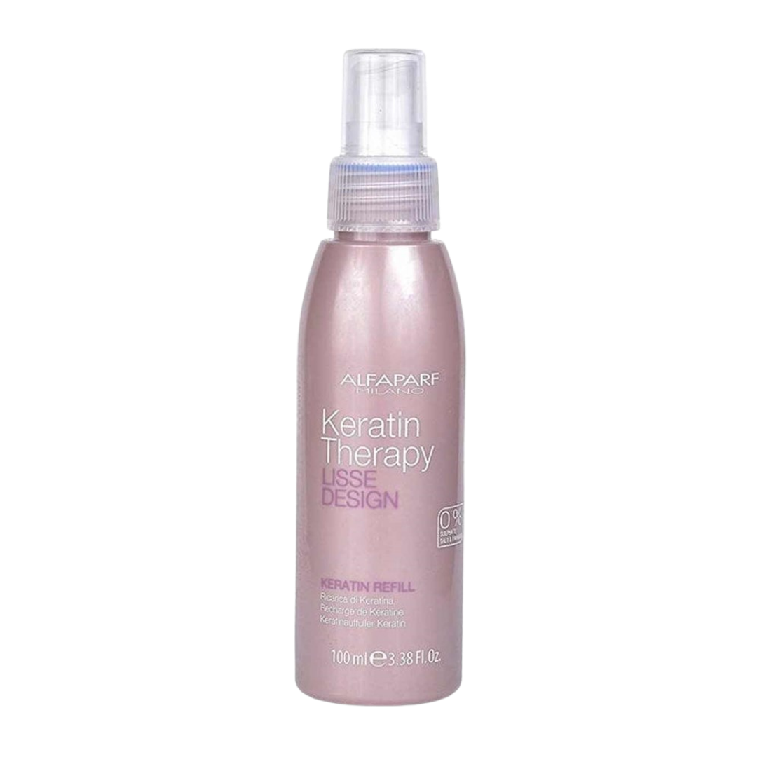 Keratin Therapy Lisse Design Keratin Refill helps replenish and reinforce the hair fibre following smoothing services. Designed to support strength, alignment and manageability, it works to maintain smoother results while enhancing softness and shine. Ideal as part of the Lisse Design maintenance routine, it assists in prolonging the polished, refined finish of keratin-treated hair.